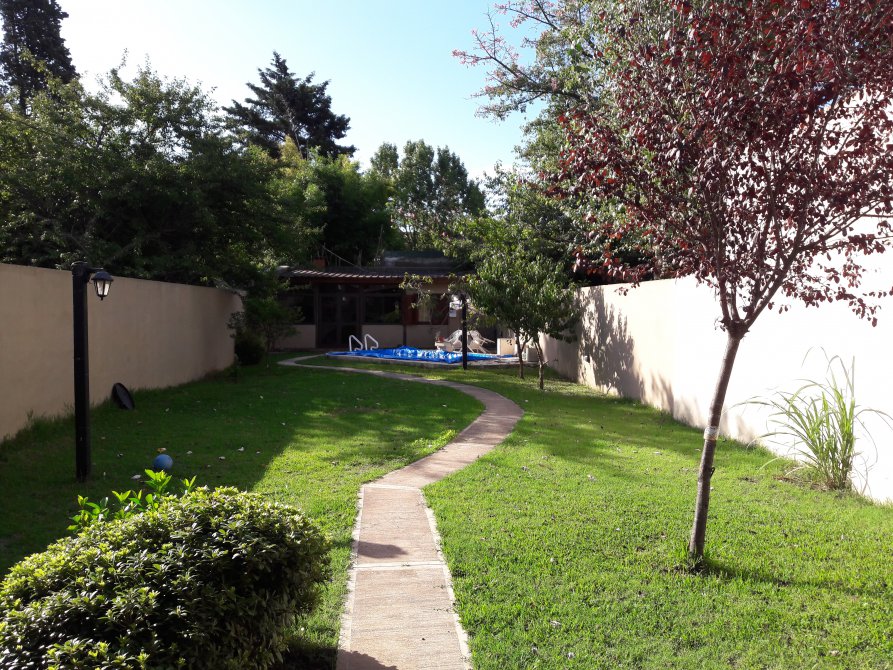 AMPLIO PARQUE AL FONDO CON PILETA DE FIBRA DE VIDRIO CON EQUIPO DE FILTRADO, AMPLIO QUINCHO CON BAÑO.
