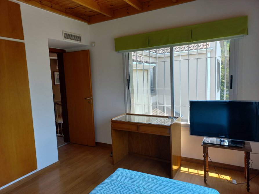 PLANTA ALTA: HABITACION PRINCIPAL MUY LUMINOSA CON VESTIDOR Y BAÑO EN SUITE CON ANTE BAÑO, DUCHADOR Y BAÑERA, PASILLO DISTRIBUIDOR CON SALIDA A AMPLIO BALCON CON VISTA AL PARQUE, SEGUNDA HABITACION CON PLACARD CON INTERIORES COMPLETOS, VISTA AL FRENTE, BAÑO PRINCIPAL CON SANITARIOS COMPLETOS Y DUCHA CON MAMPARA, TERCERA HABITACION CON PLACARD CON INTERIORES COMPLETOS Y VENTANALES CON VISTA AL PARQUE Y TERRAZA.
