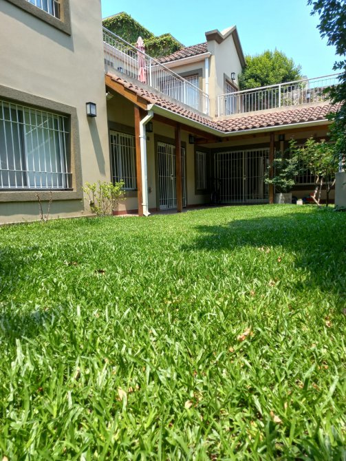 AMPLIO PARQUE CON CESPED DE GRAMILLA BAHIANA, PARRILLA TECHADA, AMPLIA GALERIA, ESCALERA DE ACCESO A TERRAZA, AMPLIO SECTOR VERDE LIBRE, SECTOR PERIMETRADO CON MUROS, FRENTE REJA CON PORTON DE ACCESO DE AUTOS AUTOMATIZADO.