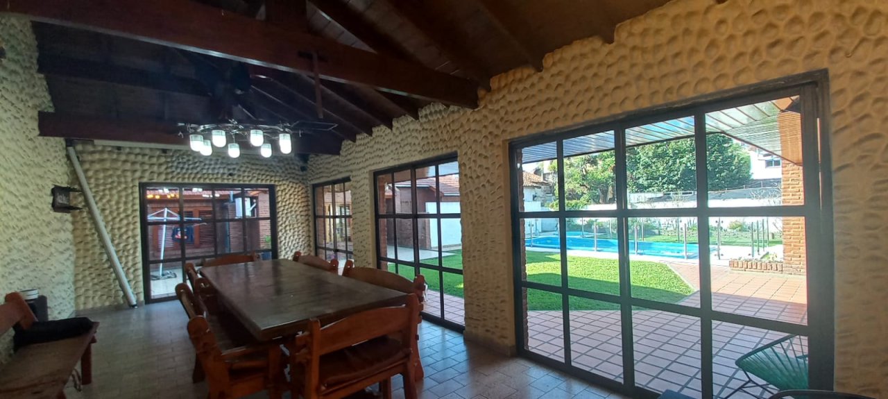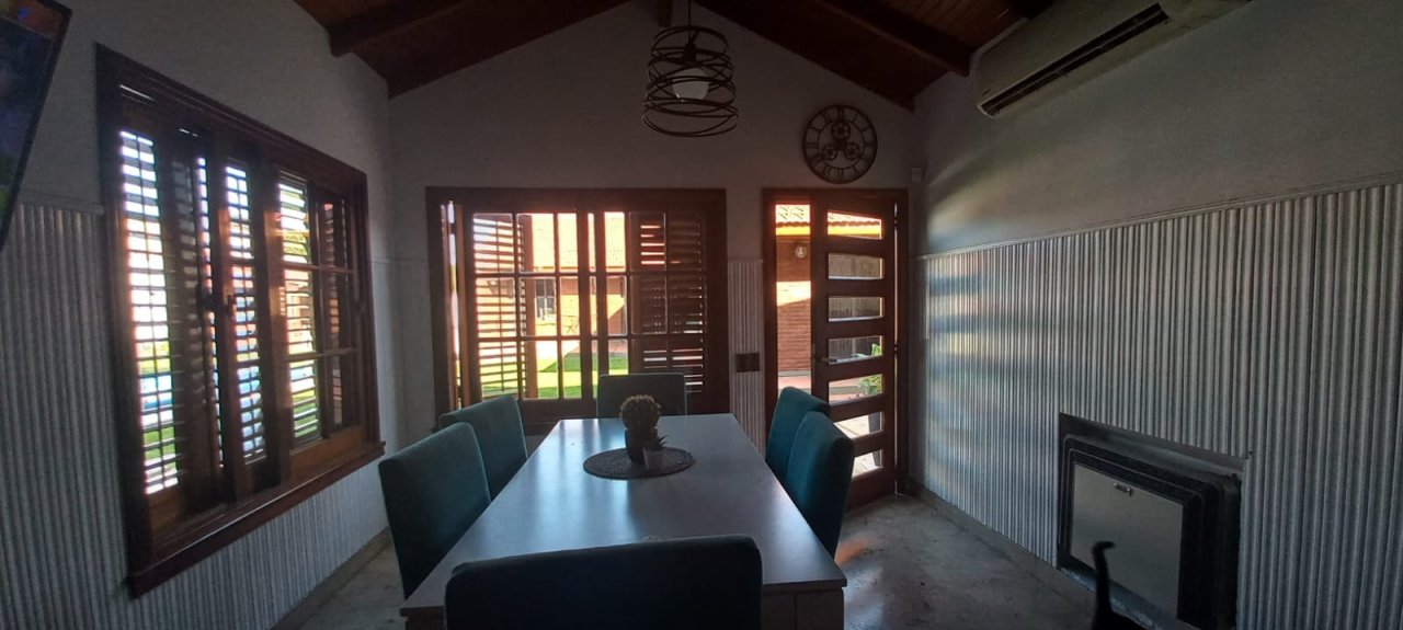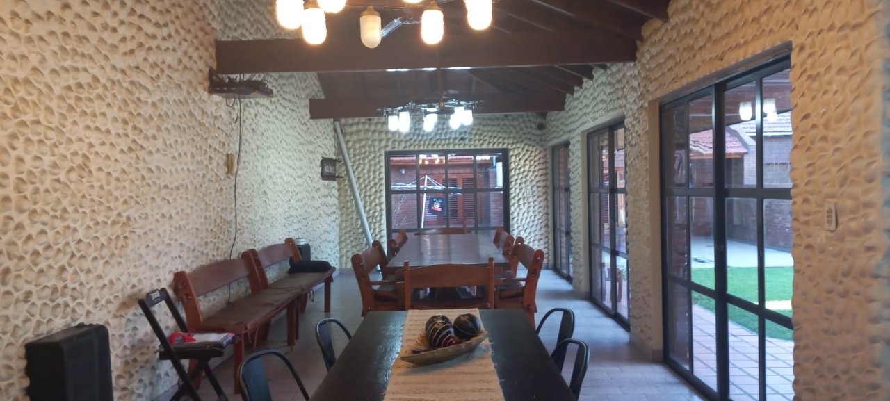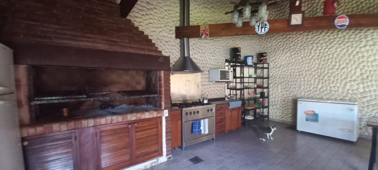 AMPLIO Y ESPACIOSO QUINCHO CON PARRILLA, AMPLIOS VENTANALES VIDRIADOS, BAÑO COMPLETO, SOTANO DED 14 MTS2 CON ESTANTES PARA VINOTECA.