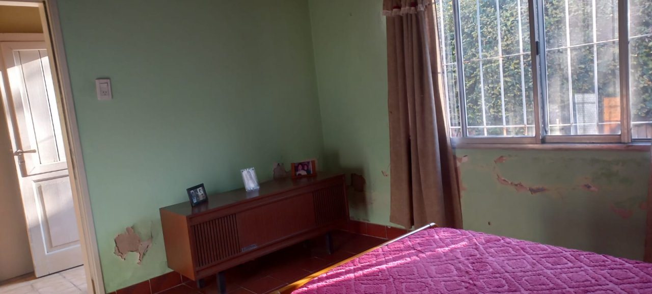 DENTRO TIENE UNA COCINA QUE CONECTA CON DOS PEQUEÑAS VENTANAS AL LIVING COMEDOR Y UNA EXTENSA PUERTA CORREDIZA, HABITACIÓN PRINCIPAL CON VISTA AL FRENTE, SEGUNDO DORMITORIO CON VISTA AL PATIO TRASERO, 1 BAÑO AL FONDO.