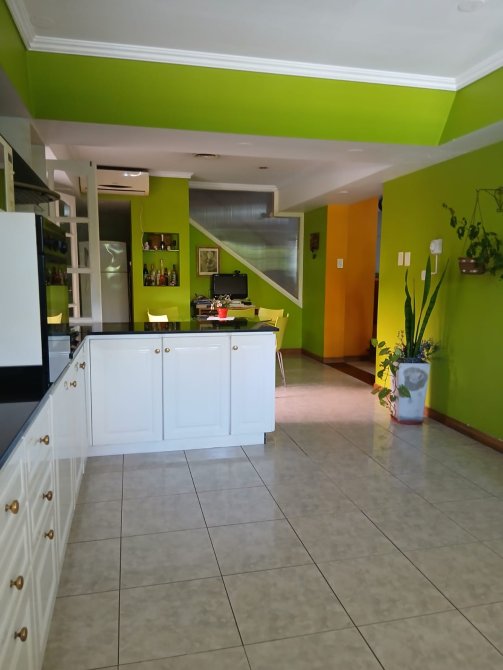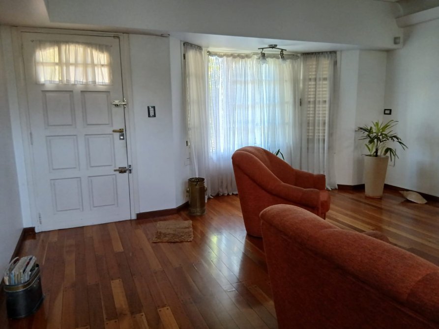 PLANTA BAJA: ACCESO POR AMPLIA Y LUMINOSA SALA DE ESTAR CON PISOS ENTARUGADOS, COMEDOR DIARIO CON PISOS DE CERÁMICA, AMPLIA COCINA CON AMOBLAMIENTOS COMPLETOS Y DESPENSA, ESCRITORIO CON VENTANAS HACIA EL JARDÍN VISTA FRENTE, BAÑO CON SANITARIOS COMPLETOS.
