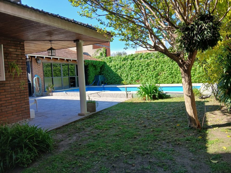 EXTERIOR: AMPLIO PARQUE Y GALERIA, QUINCHO CON PARRILLA, PISCINA DE 9 MTS X 4 METROS CON 2.20 MTS DE PROFUNDIDAD EQUIPADA CON SISTEMA DE FILTRADO Y SOLARIUM.