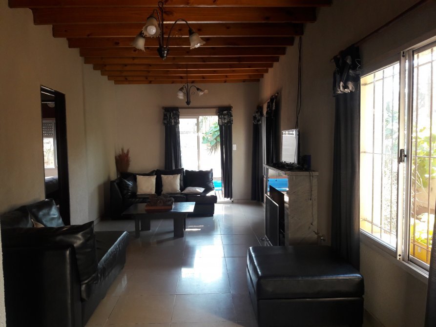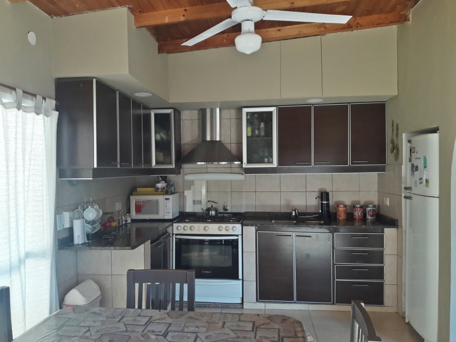 AMPLIO ESTAR COMEDOR EN SU INGRESO CON PISOS EN PORCELLANATO HOGAR A GAS O LEÑA CON ARCADA DE ACCESO A COCINA COMEDOR CON AMOBLAMEINTO DE BAJO Y SOBRE MESADA, COCINA CON HORNO MARCA BOSCH.