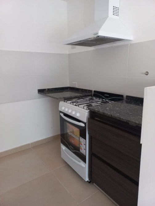 COCINA AMOBLADA CON MUEBLE BAJO MESADA, MESADA DE MARMOL DE GRANITO, BACHA DE ACERO INOXIDABLE, GRIFERIA DE PRIMERA CALIDAD, ARTEFACTO DE COCINA CON HORNO,CAMPANA CON EXTRACTROR DE AIRE, ESPACIO PARA HELADERA Y LAVARROPAS.