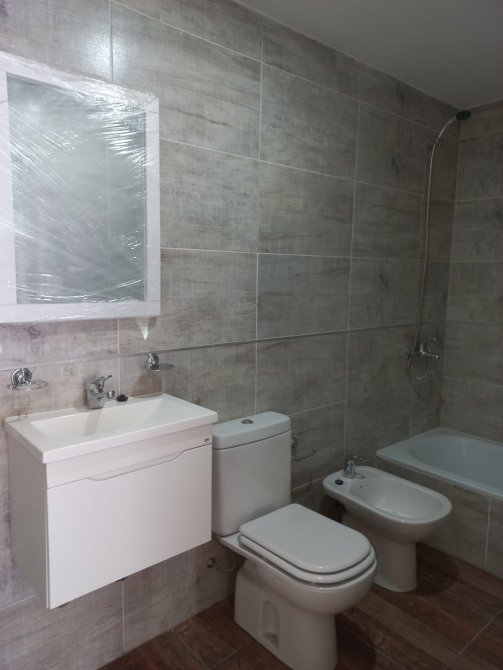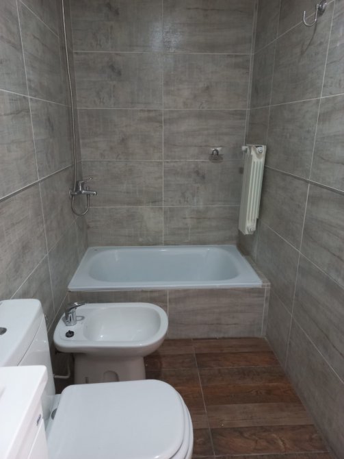 BAÑO CON SANITARIOS COMPLETOS, INODORO, BIDET, BAÑERA, LAVATORIO CON GRIFERIAS.