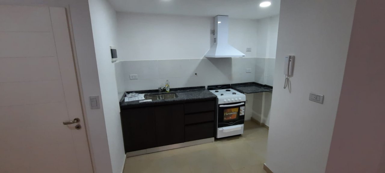 DEPARTAMENTO DE 2 AMBIENTES COMPUESTO POR COCINA AMOBLADA CON MUEBLE BAJO MESADA, MESADA DE MARMOL DE GRANITO, BACHA DE ACERO INOXIDABLE, GRIFERIA DE PRIMERA CALIDAD, ARTEFACTO DE COCINA CON HORNO, CAMPANA, ESPACIO PARA HELADERA Y LAVARROPAS, PISOS DE PORCELANATO.
