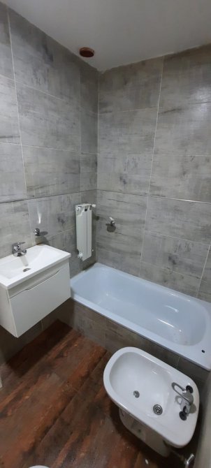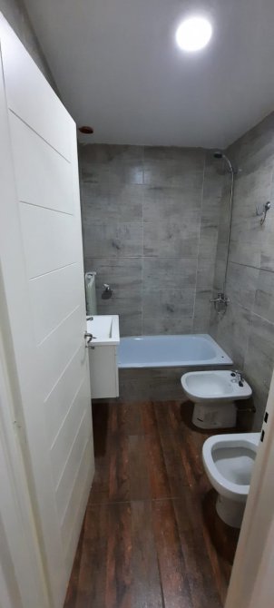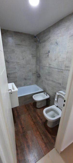 BAÑO CON SANITARIOS COMPLETOS, INODORO, BIDET, BAÑERA, LAVATORIO CON GRIFERIAS.
