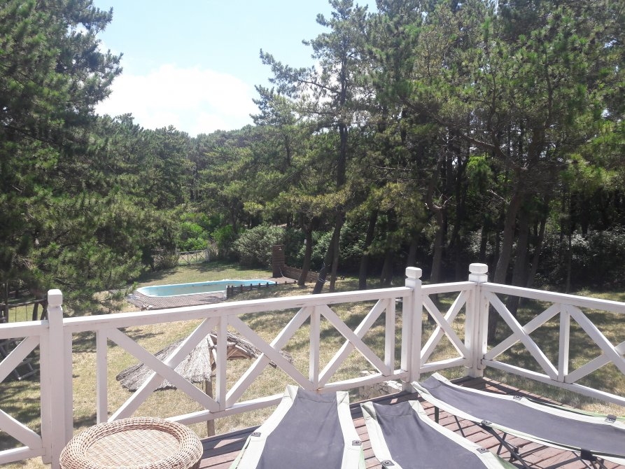AMPLIO PARQUE EXTERIOR DE DE 1650 MTS LIBRES, CON BOSQUE PROPIO, PISCINA CON SOLARIUM, SECTOR DE PARRILLA, TRANQUERA DE ACCESO AL CONTRA FRENTE.