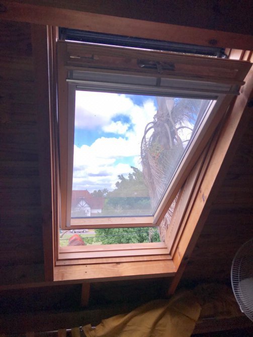 ESCALERA DE ACCESO A AMPLIO PLAYRROM EN 3ER NIVEL, CON VENTANAL VELUX CON VISTA AL PARQUE.