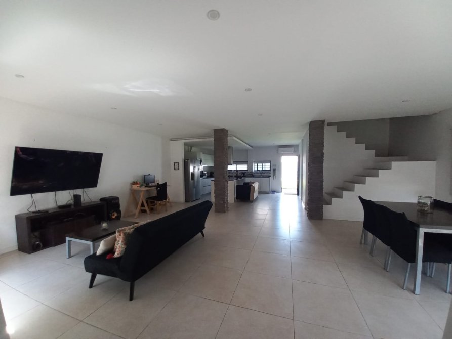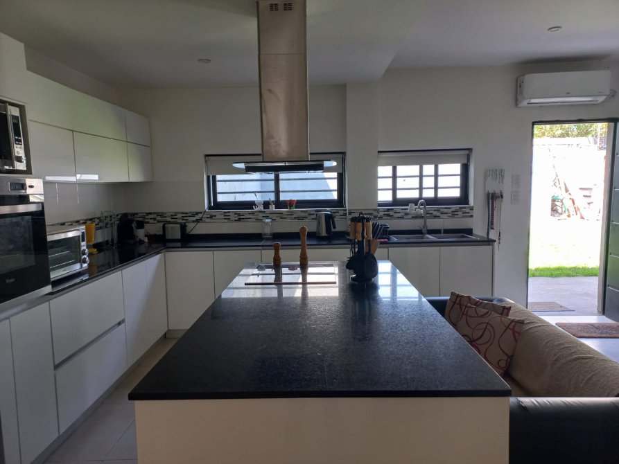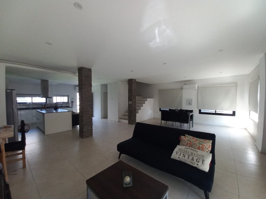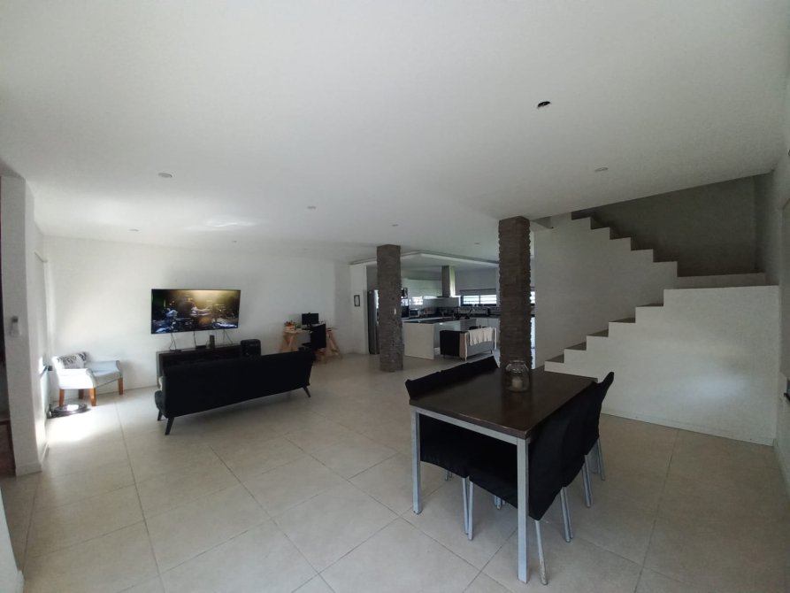 PLANTA BAJA: AMPLIO Y CONFORTABLE ESTAR COMEDOR TODO LUZ, CON AMPLIOS VENTANALES VISTA NORTE, PISOS DE PORCELLANATTO, COCINA SUPER MODERNA, ISLA SUPER MODERNA CON CON MESADA DE SILESTONE, ANAFE DE 4 HORNALLAS, PURIFICADOR DE AIRE, MUEBLE DE BAJO MESADA CON MESADA DE SILESTONE, BACHA DE ACERO INOXIDABLE, GRIFERIA MONOCOMANDO, BAÑO/TOILETTE DE RECEPCION CON DUCHA Y SANITARIOS COMPLETOS, CUARTO DE ENSERES, AMPLIO GARAGE CUBIERTO CON ESPACIO PARA 2 VEHICULOS Y ACCESO DESCUBIERTO CON ESPACIO PARA 1 VEHICULO MASS CON ACCESO POR PORTON CORREDIZO, AMPLIO FONDO LIBRE CON PISCINA CON EQUIPO DE FILTRADO INSTALADO E ILUMINACION.