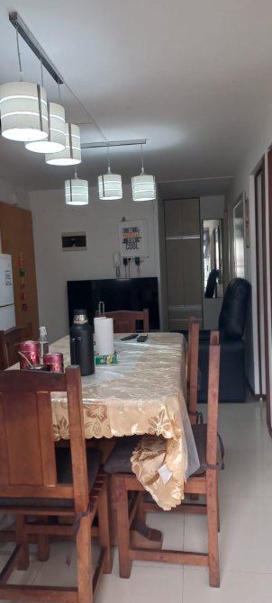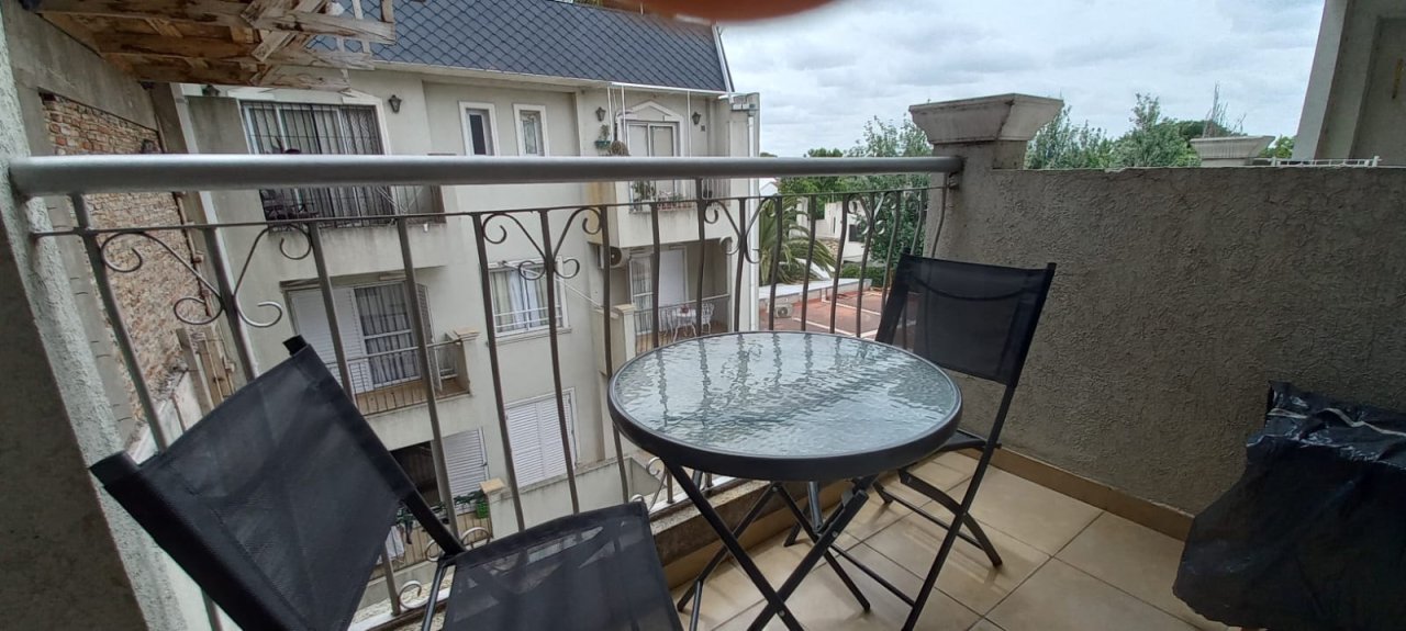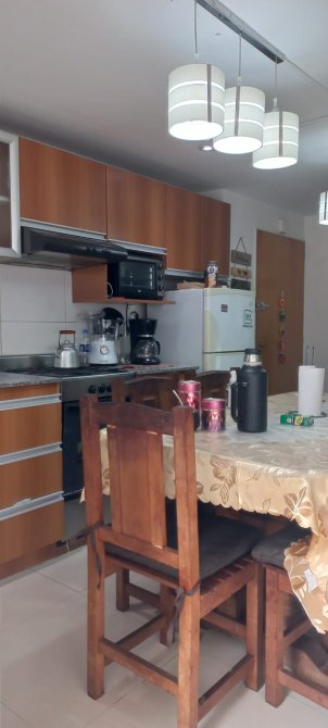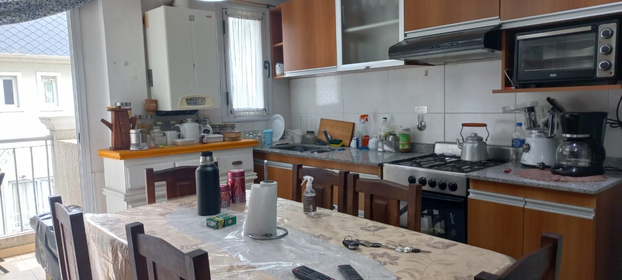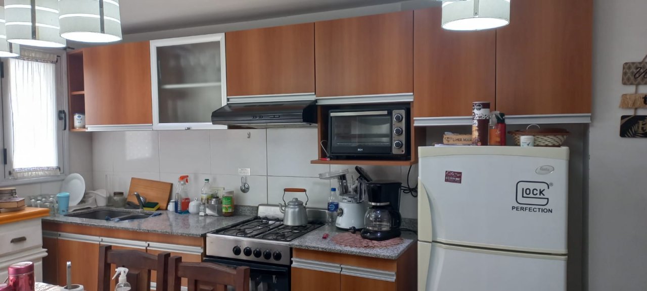 COCINA CON AMOBLAMIENTO DE BAJO Y SOBRE MESADA, ARTEFACTO DE COCINA CON HORNO, EXTRACTOR DE AIRE, COMEDOR DIARIO, PUERTA DE ACCESO AL BALCON CON REJAS, PLACARD EN PASILLO DISTRIBUIDOR, LAVADERO INDEPENDIENTE CON AMOBLAMIENTO DE BAJO Y SOBRE MESADA CON BACHA Y ESPACIO PARA LAVARROPAS, BAÑO CON SANITARIOS COMPLETOS Y DUCHADOR CON MAMPARAS.