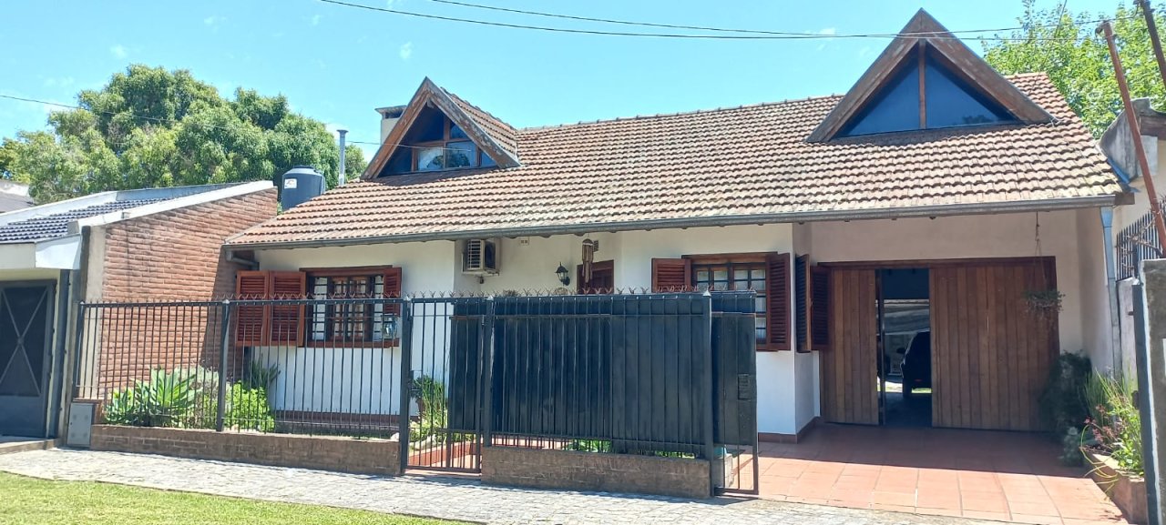EXCELENTE CHALET SOBRE LOTE DE 12 MTS DE FRENTE POR 25 MTS DE FONDO, AMPLIA COCHERA CUBIERTA PARA 2 VEHICULOS, PILETA DE FIBRA, DPTO Y QUINCHO.