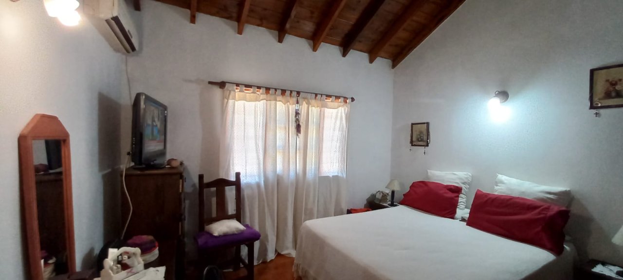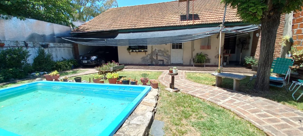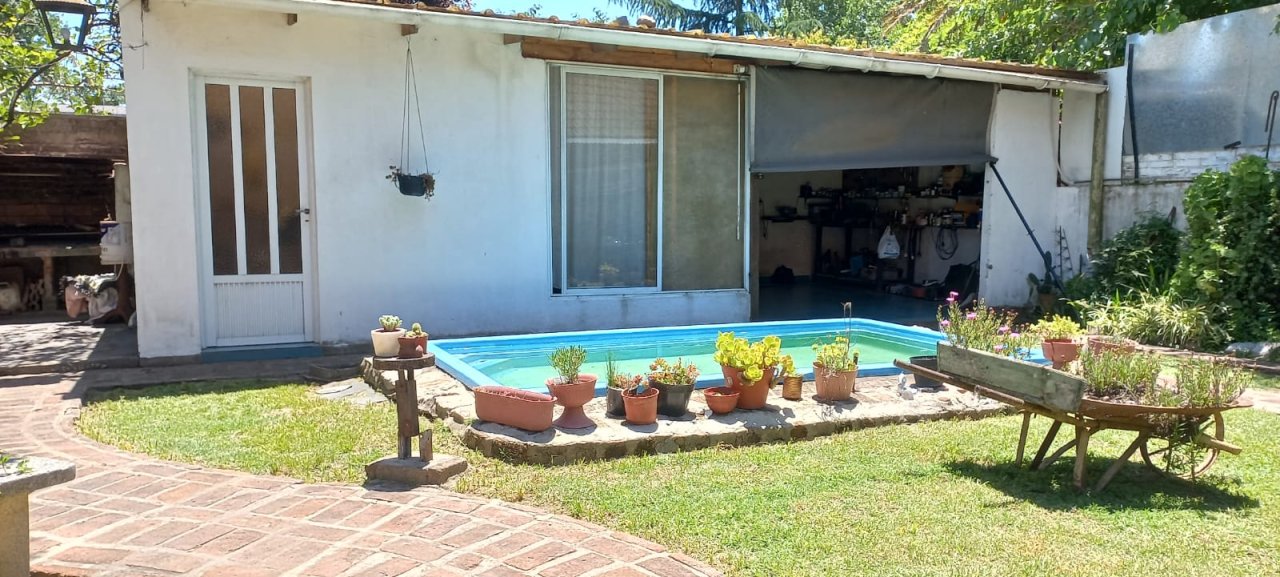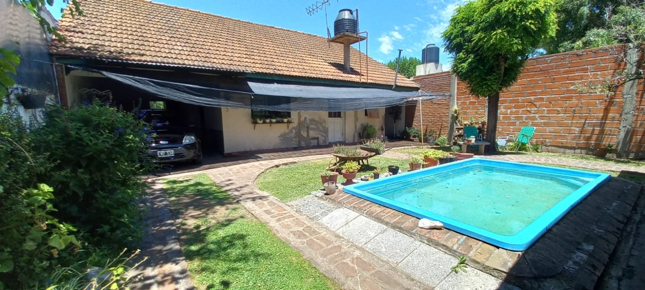 AMPLIO FONDO LIBRE CON PILETA DE FIBRA DE VIDRIO, DEPTO. Y QUINCHO CUBIERTO, PARRILLA EXTERIOR.