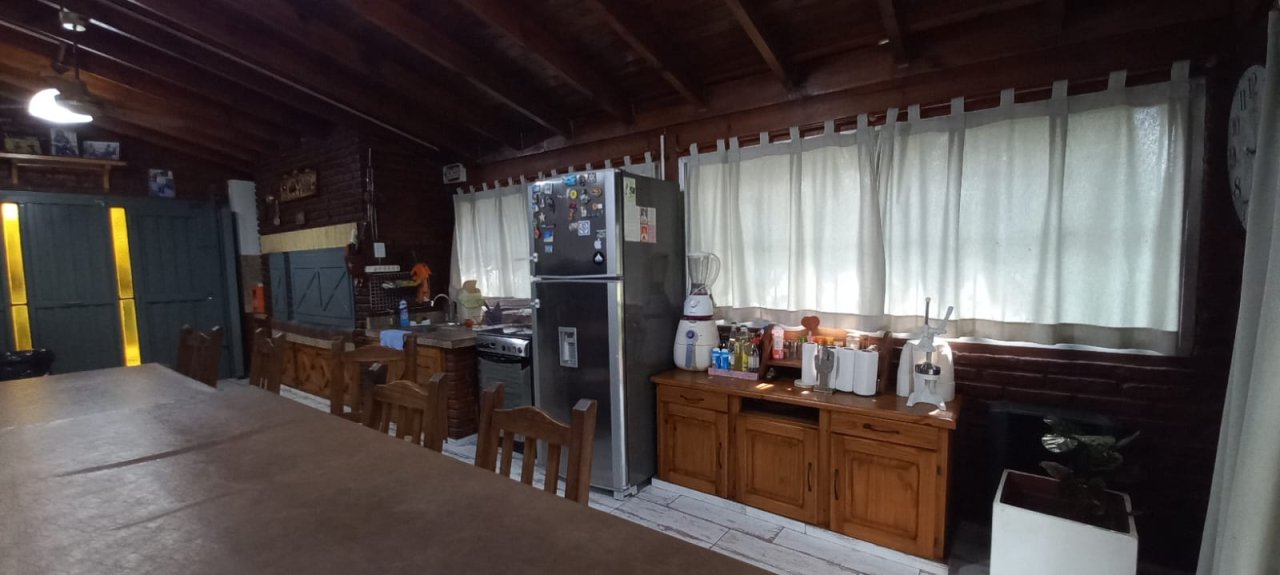 AMPLIO QUINCHO INTERIOR CON PARRILLA, AMOBLAMIENTO DE COCINA, AMPLIO ESPACIO PARA REUNIONES, COCINA COMEDOR AMOBLADA, BAÑO CON SANITARIOS COMPLETOS, 3 HABITACIONES, SALA DE ESTAR CON HOGAR.