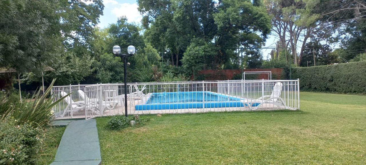 AMPLIA Y CONFORTABLE QUINTA IDEAL PARA DESCANSO FAMILIAR, FESTEJOS Y EVENTOS, PISCINA (11,5 X 4,5 METROS), 3 DORMITORIOS, 2 BAÑOS, COCINA, 2 QUINCHOS, PARRILLA, SALAMANDRA, ESTUFAS A GAS, AIRE ACONDICIONADO, CANCHA DE PADDLE, CANCHA DE FUTBOL 5, AMPLIO PARQUE MUY LUMINOSO CON ORIENTACIÓN ESTE, ALARMA, CÁMARAS DE SEGURIDAD Y GARAJE CON CAPACIDAD PARA 2 VEHÍCULOS, GARAGE CERRADO CON CAPACIDAD PARA 2 VEHICULOS.